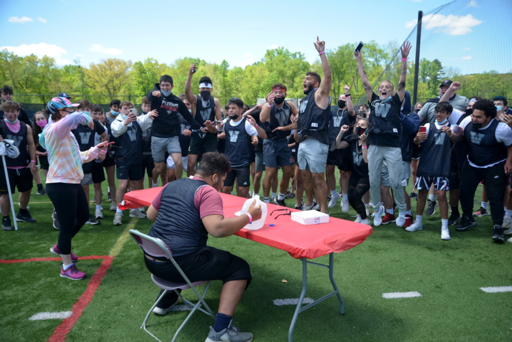 It is important to note that House Olympics took place on May 6th, after being postponed due to unfavorable weather, which made it the first event that the whole high school was present for in-person The only critique suggested was from Robert’s House head and Math teacher, Ms. Allison Rader, stated that “[she] could do without pie eating. The water polo coach in me would love to see a pool activity.” Pie eating seemed to be one of the most disgusting, yet exhilarating contests of the whole day. Mollie Durkin ’21 had a differing opinion stating, “Watching pie eating, all there together as a house and all four grades rooting for Allcott especially, as a prefect was great to see!”
